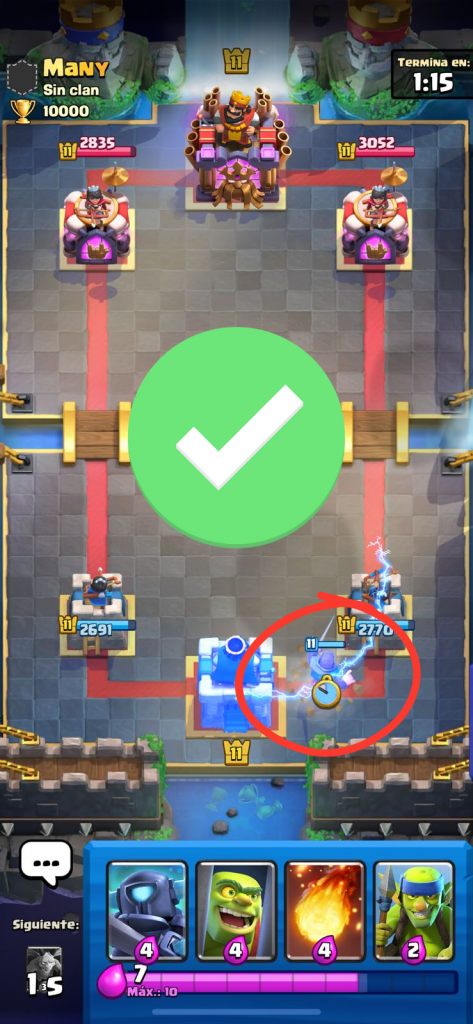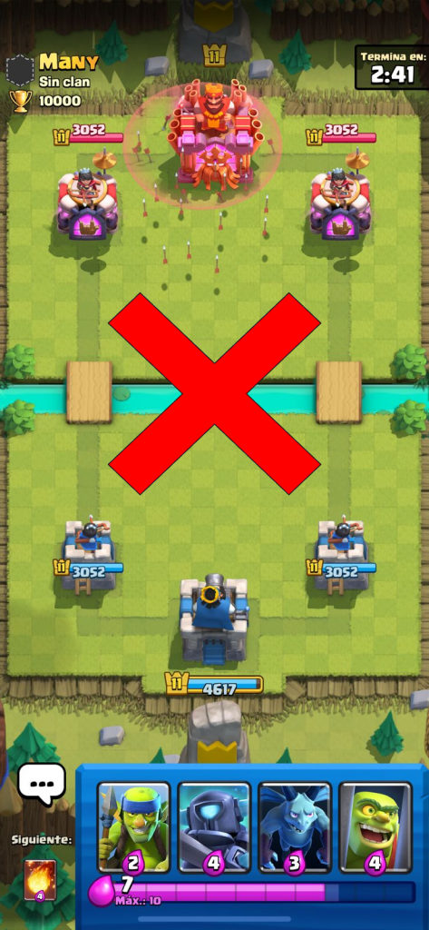 - No lances hechizos hacia la Torre del Rey enemigo: Aunque parezca que aprovechas mejor un hechizo haciendo daño a la torre, en realidad le estás dando ventaja al rival durante toda la partida.