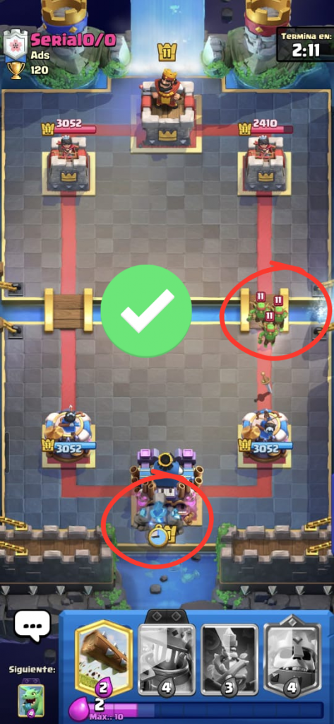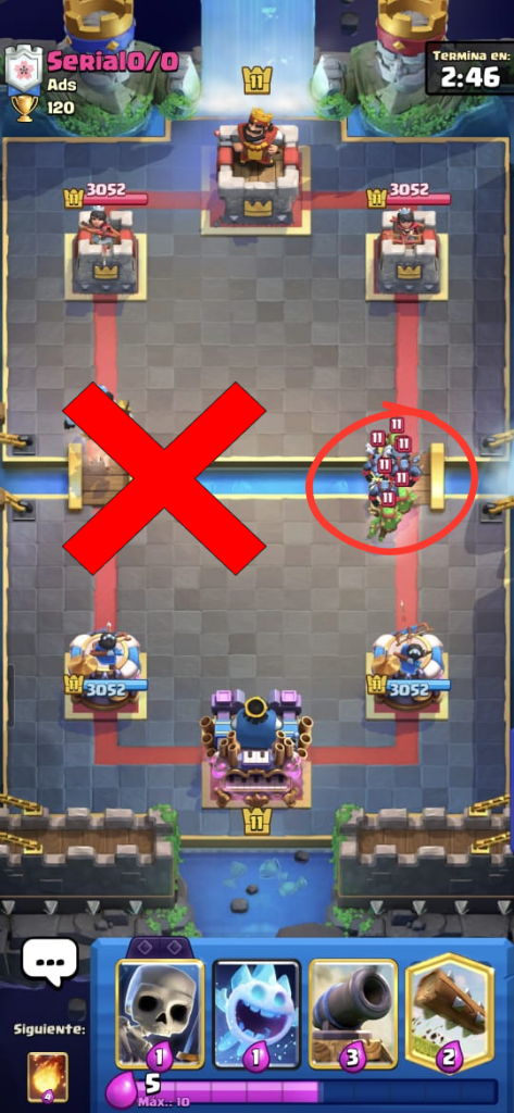 Esto ocurre con frecuencia, por ejemplo, cuando colocas tropas de largo alcance frente a la torre de princesa. Aunque estas cartas pueden hacer mucho daño, generalmente tienen poca vida, por lo que el rival puede aprovecharlo para acabar con ellas rápidamente usando un hechizo fuerte. Así, pierdes defensa y el enemigo avanza con su ataque casi sin obstáculos.